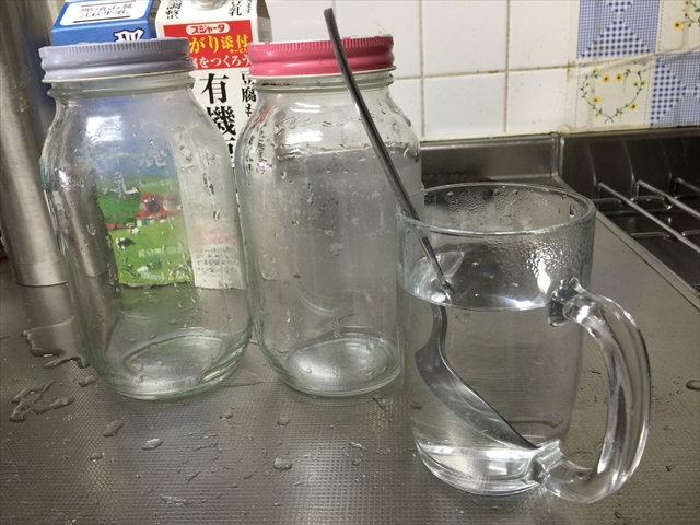 そのお湯で瓶とスプーンを消毒します。