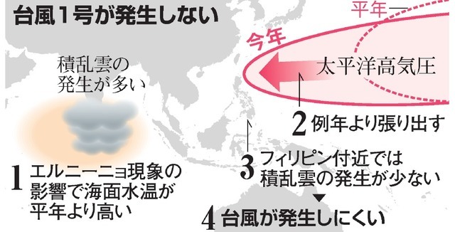 ラニーニャ現象の影響か??5月を過ぎても台風が発生しないのは18年ぶり