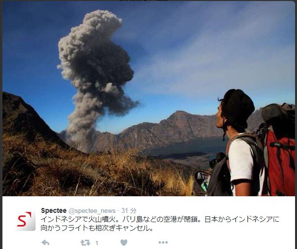 インドネシア、ロンボク島にあるバルジャリ山が噴火??影響で空港が閉鎖中