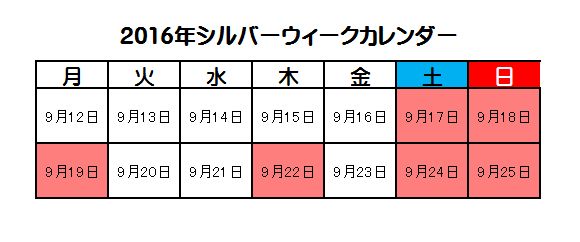 そしてそしてシルバーウィークになるが、今年のシルバーウィークはカレンダーの並びが良くない。