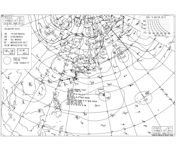 下の天気図は今日 2015年9月16日気象庁発表のものです。