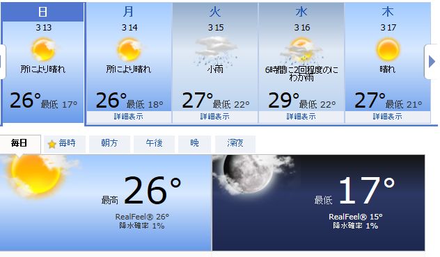 ちなみに今週はまだ寒いみたいですが、晴れると25度程度です。