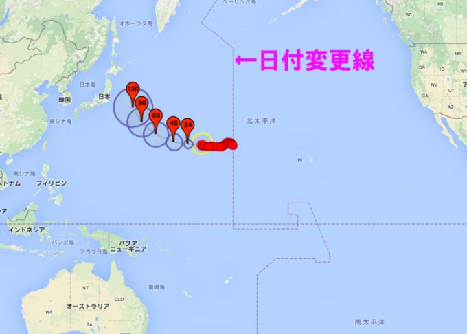 カリフォルニアからハワイ周辺で発生して発達したトロピカルストームやハリケーンがそのまま日付変更線を超えると「台風」になって、そのままの名前を引き継ぐことになっているので