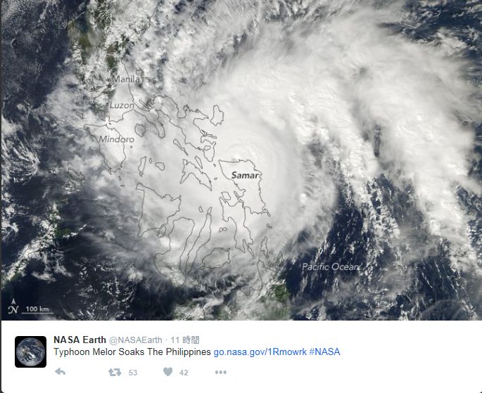 70万人以上が避難した台風27号です。(NASA twitterより)
