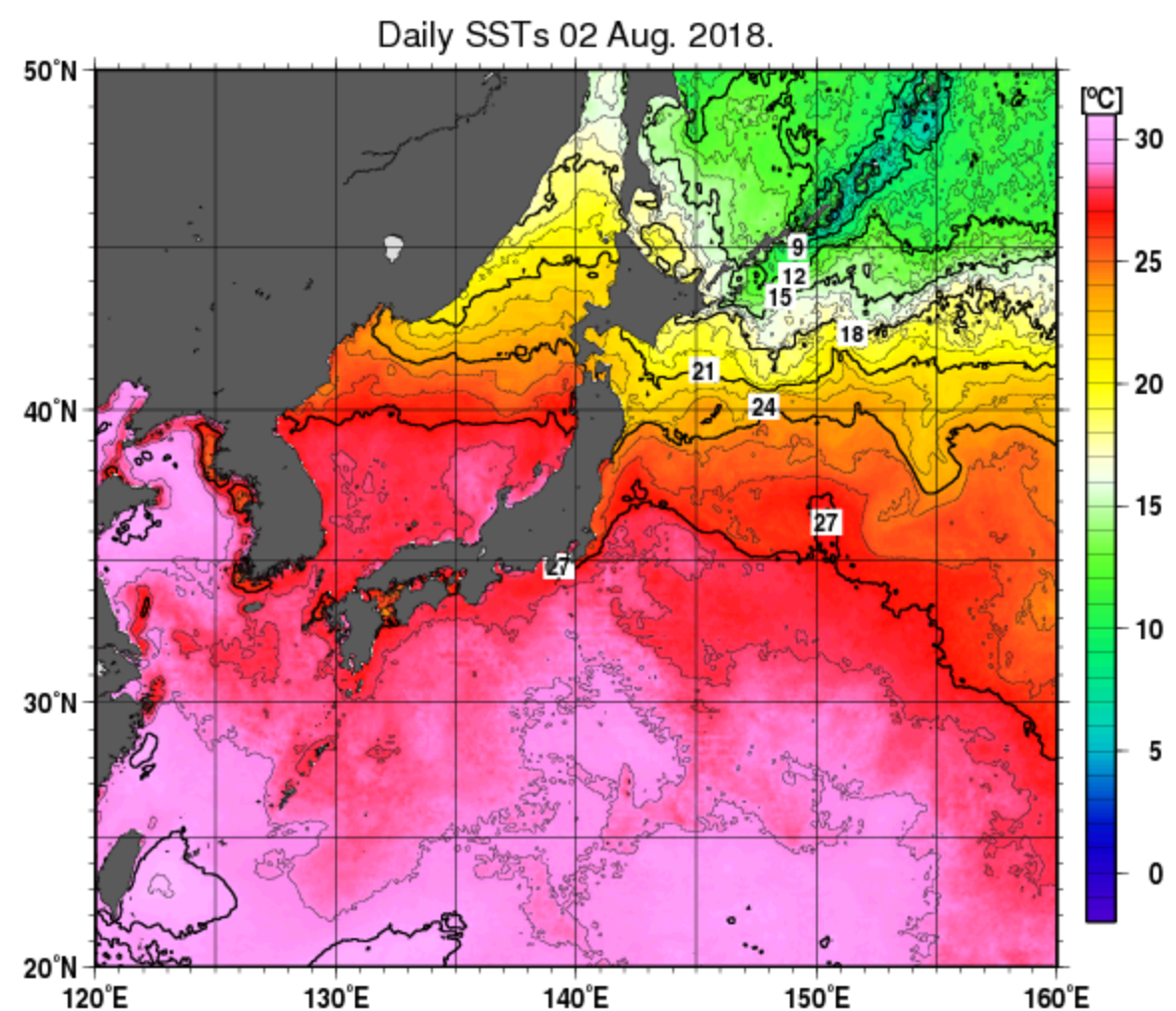今日現在はエネルギーを十分注入できそうな海水温。